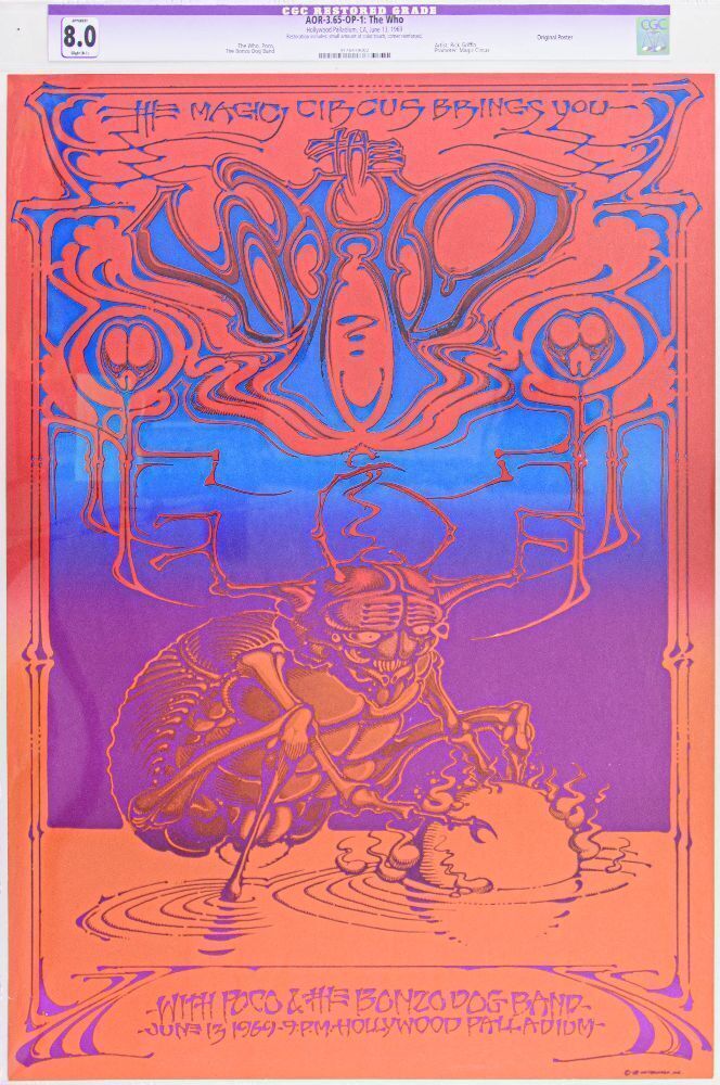 • 1969 AOR-3.65 Rick Griffin The Who Hollywood Palladium Poster CGC 8.0 Restored