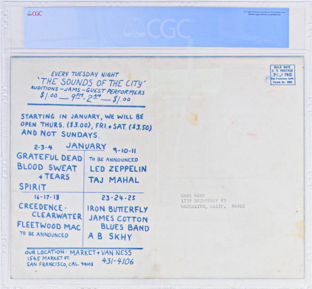The October 2025 CGC Certified Concert Poster Auction (#269) 10/07/2025 2:00 PM EDT - 10/16/2025 9:49 PM EDT
