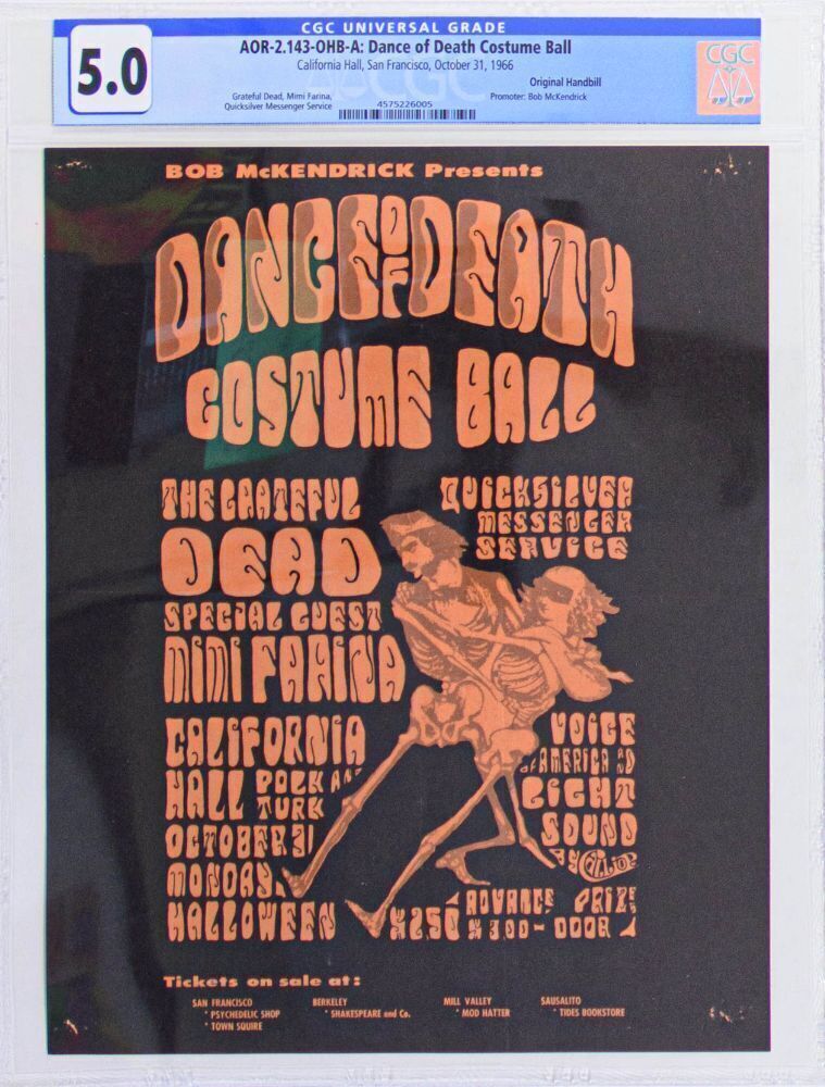 • 1966 AOR-2.143 Grateful Dead California Hall Halloween Dance of Death Handbill CGC 5.0