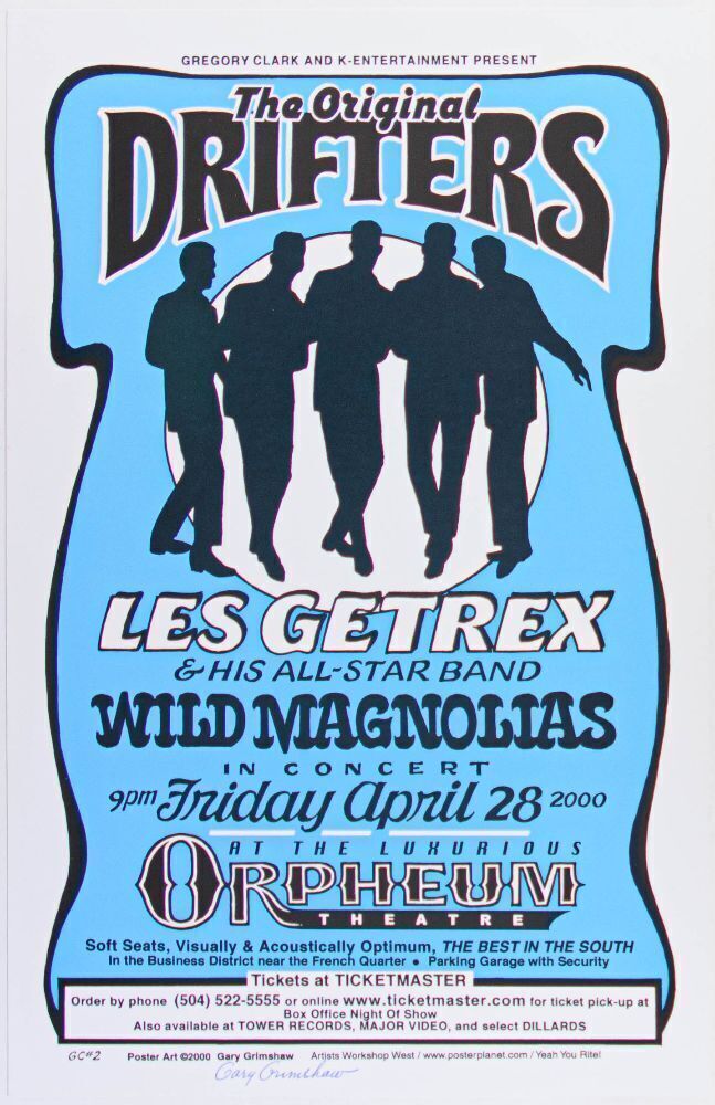 • 2000 The Original Drifters Orpheum Theatre Signed Grimshaw Poster Mint 91