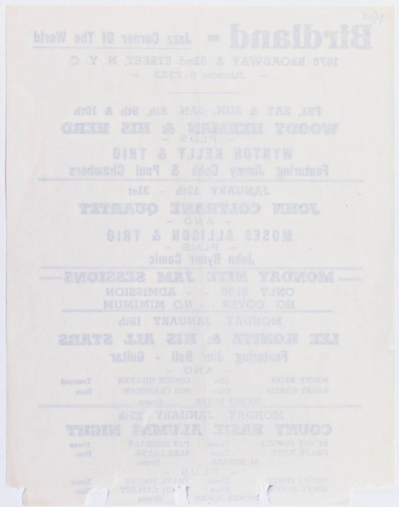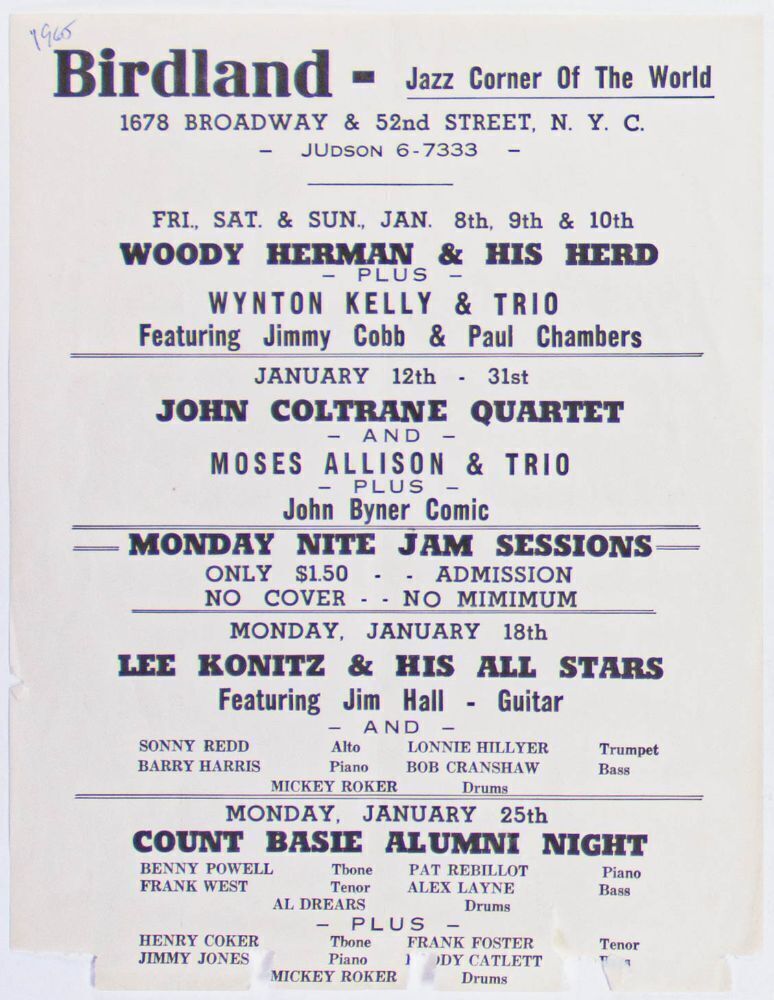 Lot #291965 John Coltrane Quartet Count Basie Woody Herman Birdland Jazz Club New York Flyer Extra Fine 63