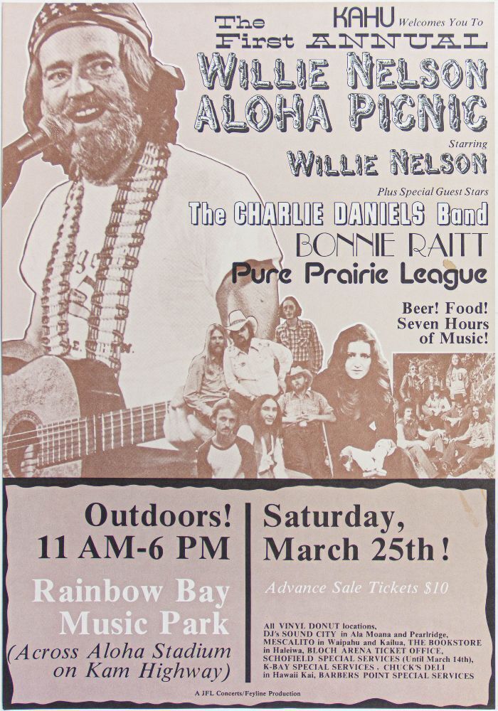 • 1978 1st Annual Willie Nelson Aloha Picnic Rainbow Bay Music Park Hawaii Poster Near Mint 83