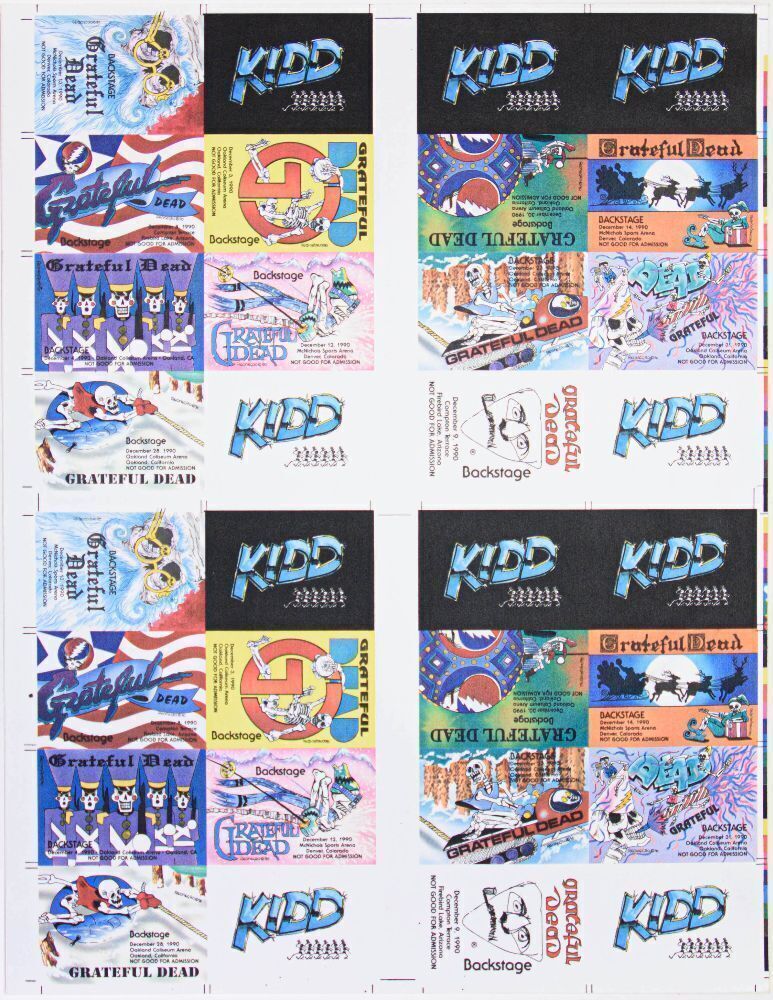• 1990 Grateful Dead & Crewmember Kidd Backstage Passes Uncut Sheet